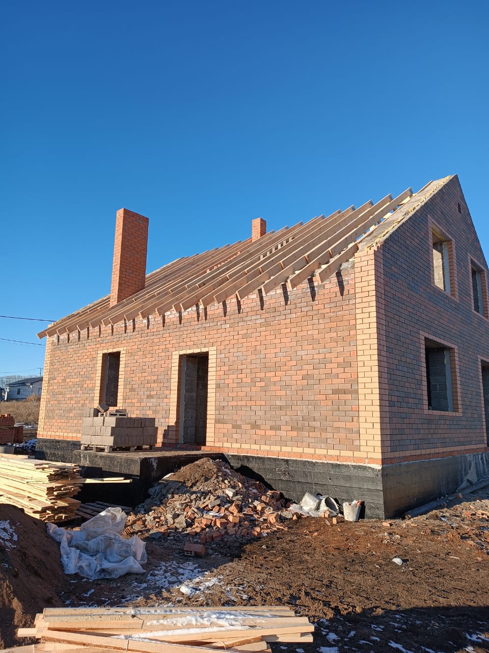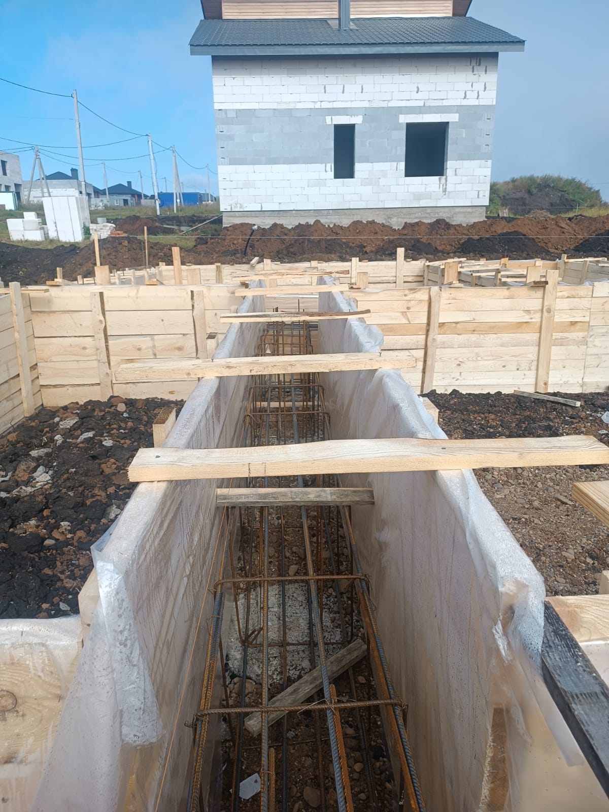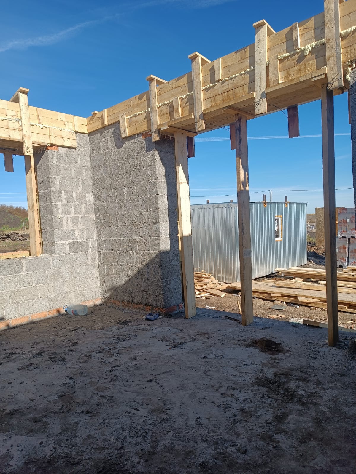 Стерлитамакский район, деревня Верхняя Марьевка. Начало работ - Август 2024 года, дом 165 кв. м. мансардного типа, основные стены керамзитоблок, 400 мм. несущие перегородки.
