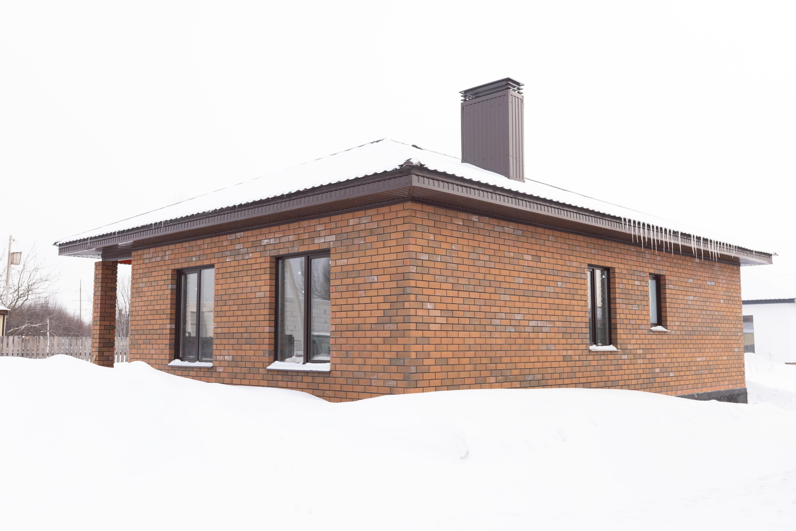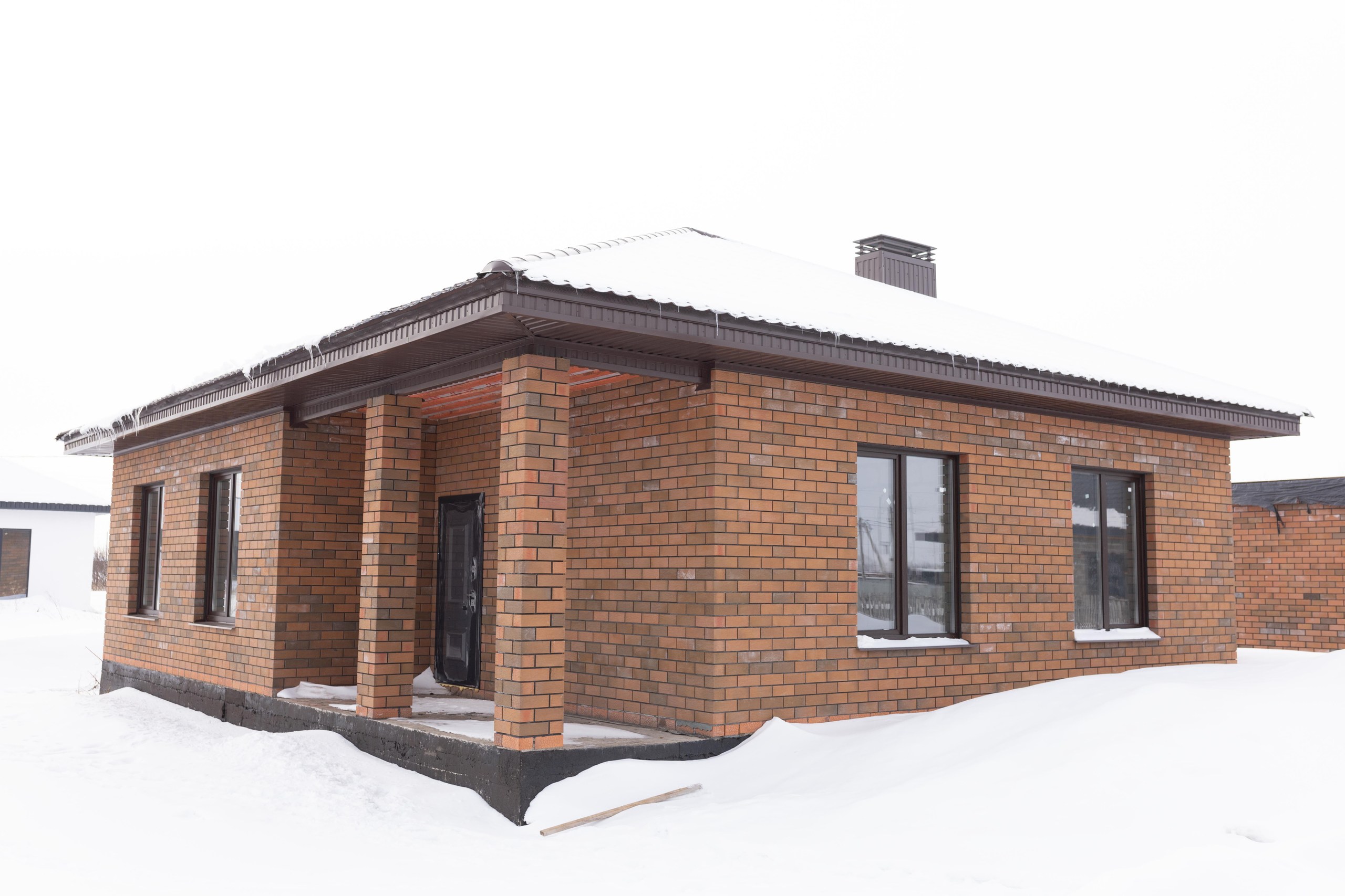 Размер 12,5Х9,5. Площадь - 98 кв.м. Материал: Газоблок, облицовка кирпич Баварская кладка. Коммуникации: электричество, канализация.
