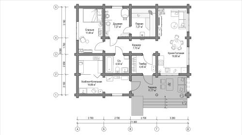 В вариантах указана стоимость строительства дома из разного материала. Цены указаны за строительство дома в ипотеку, при заказе строительства дома за наличный расчет предоставляется скидка 10%. Проект дома-бани "Ситники" размером 9 на 11,3 м и площадью 101,7 кв.м – это проект одноэтажного дома из оцилиндрованного бревна, который содержит в себе банный комплекс. В проекте дома-бани предусмотрены все необходимые помещения: терраса, тамбур, коридор, спальня, туалет и небольшая кухня-гостиная. Кроме того, для принятия банных процедур в представленном проекте дома запроектированы парная и душевая. Интересной особенностью проекта является наличие дополнительного помещения, которое обеспечено отдельным входом и объединяет в себе котельную и хозяйственный блок. Благодаря наличию хозяйственного помещения, нет необходимости в возведении на участке сооружения под сарай.
