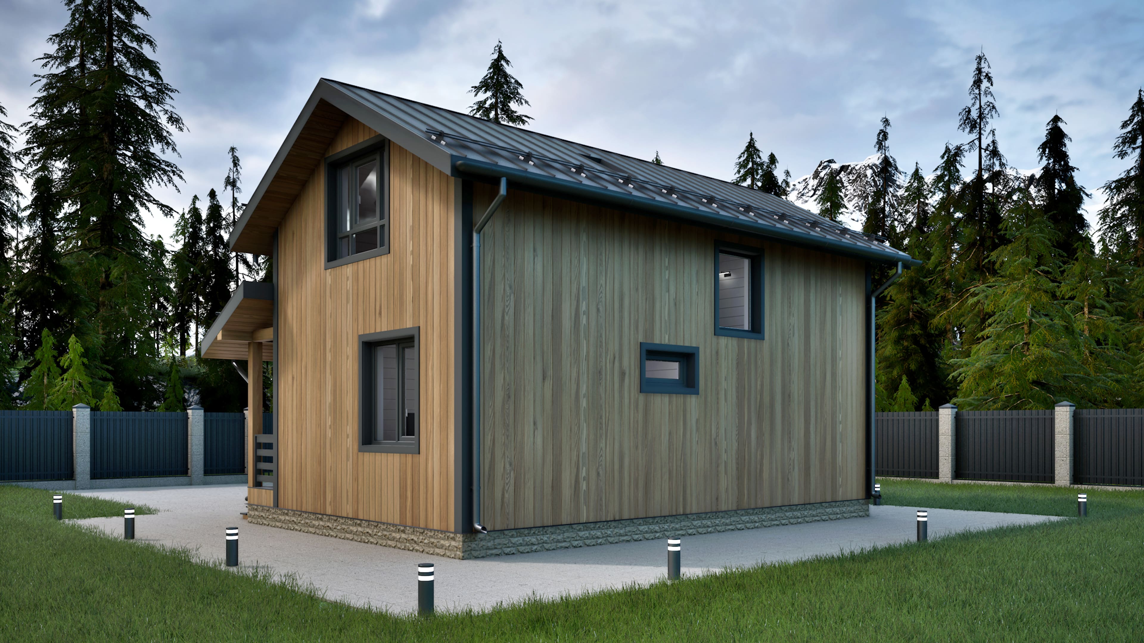 В вариантах указана стоимость строительства дома из разного материала. Цены указаны за строительство дома в ипотеку, при заказе строительства дома за наличный расчет предоставляется скидка 10%. Этот дом создан для тех, кто ценит простор и свет. Панорамные окна открывают вид на участок и наполняют комнаты естественным освещением в течение всего дня. Планировка решена так, чтобы каждая зона имела своё назначение и при этом оставалась связанной с общим пространством. Дом подойдёт для семьи, которая хочет жить современно и свободно, сохраняя уют и удобство в каждом дне. На первом этаже находится объединённая зона кухни и гостиной с выходом на террасу, а также отдельная комната, которую можно использовать по-разному — от кабинета до спальни. Здесь же расположены санузел и хозяйственные помещения.