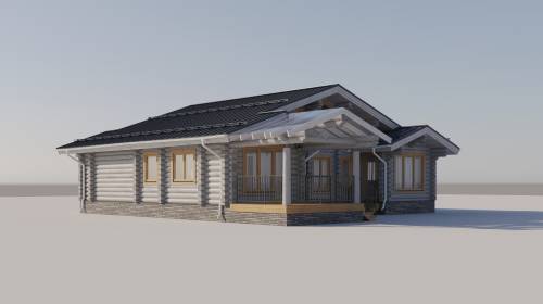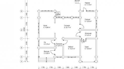 В вариантах указана стоимость строительства дома из разного материала. Цены указаны за строительство дома в ипотеку, при заказе строительства дома за наличный расчет предоставляется скидка 10%. Проект одноэтажного дома "Долгопрудный" размером 12,5 на 14 м и площадью 131,3 кв.м – проект красивого, удобного одноэтажного дома, в плане которого предусмотрен гараж и небольшая терраса. Все помещения проекта расположены в одном уровне, что придает комфорт в их использовании, а также предоставляет быстрый доступ в любую комнату. Главный вход в дом организован через крыльцо, которое ведет в прихожую. Также на этаже запроектированы удобный кабинет, с/у, котельная, уютная спальня и просторная гостиная, объединенная большой аркой с кухней. Особое настроение гостиной придает оригинально расположенная на фасаде двухуровневая группа окон, которая обеспечивает отличную инсоляцию, наполняет комнату теплыми лучами дневного света и уютной атмосферой. Кроме центрального входа проект одноэтажного дома подразумевает три дополнительных. Один из них – в гараже. Встроенный гараж запроектирован на одну машину, и кроме въездных ворот имеет вход во внутреннюю, жилую часть дома через котельную. Другой расположен в зоне кухни, он позволит быстро и удобно организовать обед или ужин на свежем воздухе. А третий ведет из спальни на небольшую террасу.