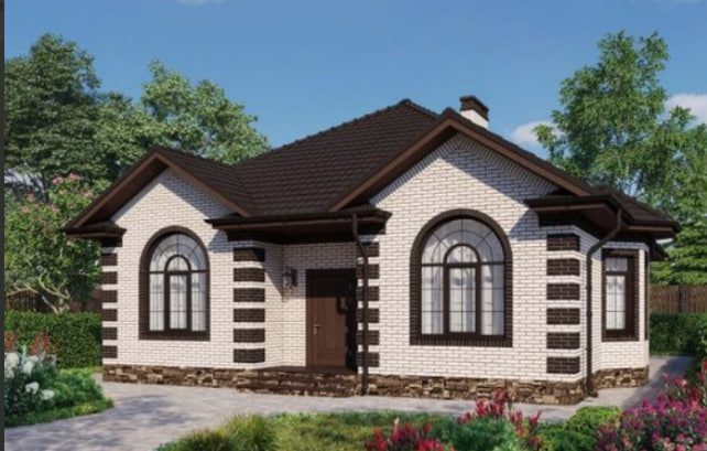 В вариантах указана стоимость строительства дома из разного материала. Цены указаны за строительство дома в ипотеку, при заказе строительства дома за наличный расчет предоставляется скидка 10%. Прихожая 7.09 + Холл 12.40 + Кладовая 4.81 + Ванная 5.56 + Туалет 2.33 + Спальня 17.95 + Спальня 14.46 + Спальня 14.46 + Кухня-гостиная 35.02 + Терраса 17.14 = 131.22