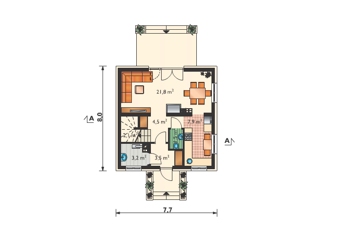 В вариантах указана стоимость строительства дома из разного материала. Цены указаны за строительство дома в ипотеку, при заказе строительства дома за наличный расчет предоставляется скидка 10%. 8,64 м терраса, 25 м² общая площадь, основное помещение 12,2 м², спальня 8,5 м², прихожая 6,2 м², коридор 5,4 м², санузел 4 м², кладовая 4 м², еще одна кладовая 4 м², дополнительное помещение 3 м² и 11,64 м.