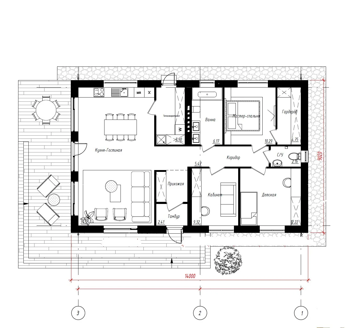 Архитектура дома отличается простотой и элегантностью, воплощая в себе стиль и функциональность. Площадь дома идеально подходит для комфортной жизни и включает в себя все необходимое.Планировка дома включает: тамбур, котельную, прихожую, кухню-гостиную, гостевой санузел, две детские спальни, просторную хозяйскую спальню с хранением и гардероб.